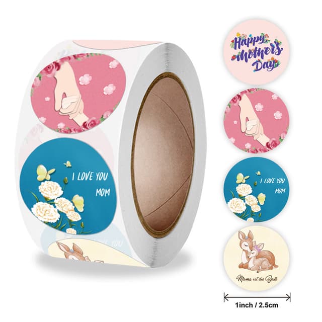 ""Morsdag""-klistremerker 1 rull 500-stykke Flerfarget 25 mm