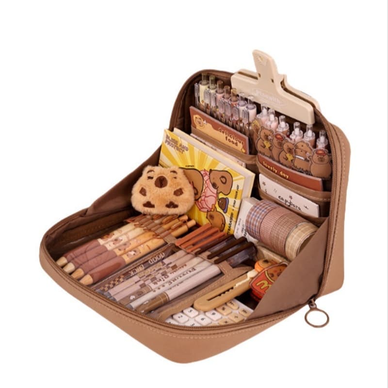 Allsidig og stilig: Dette penalet er mer enn bare en oppbevaringsplass for skrivesaker det er et stilig tilbehør. Den karamellbrune fargen gir et snev av raffinement, noe som gjør det perfekt for studenter i alle aldre.