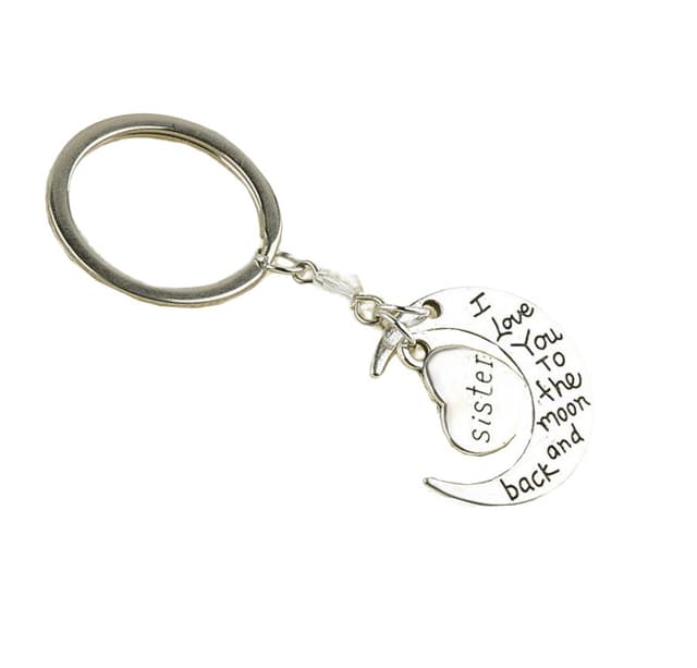 Med ""Søster, jeg elsker deg til månen og tilbake"" inngravert, er nøkkelringen en av de beste gavene til søster. Ha en og vis søsteren din hvor viktig hun er i våre hjerter.