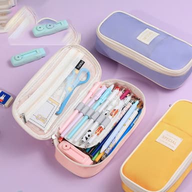 Høykvalitets polyestermateriale: Dette pennaletuiet er laget av høykvalitets polyester og er bygget for å tåle daglig slitasje. Stoffet er motstandsdyktig mot rifter, tårer og skrubbsår, noe som sikrer at skrivesakene dine forblir beskyttet. Den robuste glidelåsen gir sikker oppbevaring og forhindrer utilsiktet søl.