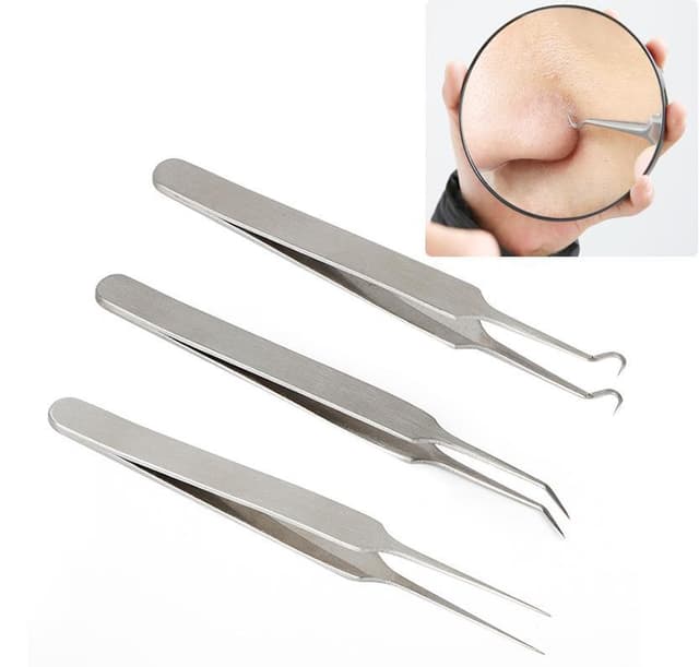 Sett med instrumenter for fjerning av porer. Pinsetten er laget av rustfritt stål som er slitesterk og lett å holde ren. Porefjerneren er behagelig å holde og lett å kontrollere. Gjør det mulig å enkelt og skånsomt fjerne hudormer.