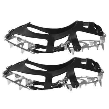 Disse sterke piggene gir sikkert grep på isete veier og pakket snø. Uansett hvilken utendørsaktivitet du driver med, sørger stegjernenes 18 ståltenner for at du ikke sklir. Stroppen er elastisk slik at piggene komfortabelt kan trekkes over skoene og gi dem en perfekt passform.