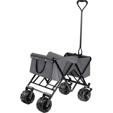 Til utflukten, i hagen eller på byggeplassen: Den sammenleggbare trallevognen fra tectake er det perfekte valget til nesten alle typer transport. Den robuste håndvognen tåler last som er opptil åtte ganger vognens vekt. De brede, myke dekkene i plast på denne offroad-vognen kan fint brukes på sandgrunn. Siden transportvognen kan slås sammen med et enkelt håndgrep, er det enkelt å stue den bort. Den sammenleggbare håndvognen fra tectake kombinerer høy bæreevne med lett transport og er lett å trille i ulendt terreng.