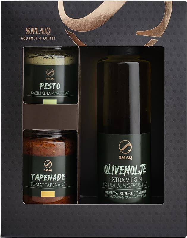 Opplev middelhavssmakene hjemme med Smaq Tapas sett 8013. Smaq Tapas-settet er laget av førsteklasses ingredienser som olivenolje av høy kvalitet, fersk basilikum og modne tomater, og er perfekt til brød, pasta, salater og tapastallerkener.Les mer om produktet