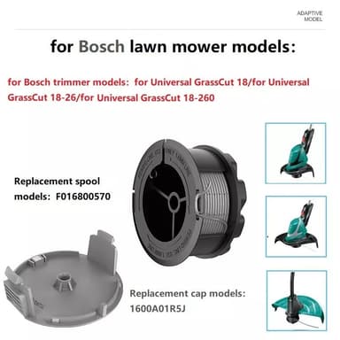 Kompatibilitet: Kompatibel med Universal GrassCut 18-26 gresstrimmerhode F016800570, egnet for Bosch trimmermodellene ART 23 SL (3600HA5000), ART 23 SL (3600HA5070), ART 2300 (3600 (3600), 02HA5, 0200 (0200) 26 SL (3600HA5100), ART 26 SL (000000), (HA5170) ART Easy.