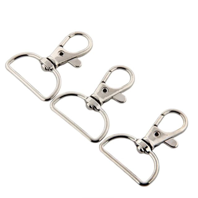 Disse svingbare karabinkrokene med halvrunde ringer byr på mange praktiske bruksområder. Perfekt for å feste stropper til håndvesker, til hundehalsbånd og ulike DIY-prosjekter.