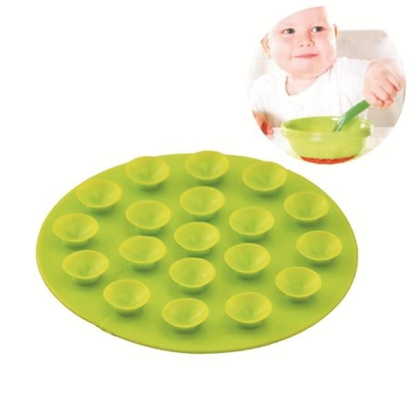 Miljøvennlig tallerkenunderlegg med sugekopper som passer for barn over 6 måneder. Med dette praktiske underlegget blir spisestunden mindre klissete. Tallerkener/skåler holder seg på plass og gjør det vanskeligere for barna å velte eller flytte på dem.