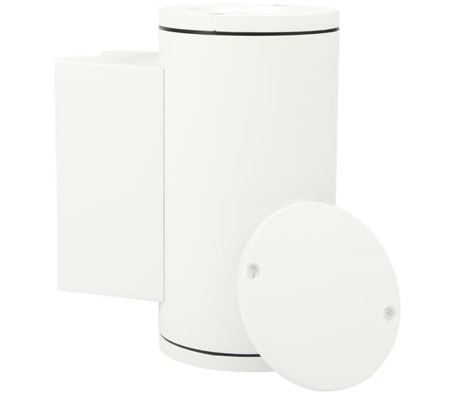 Kraftig veggarmatur på 840 lm, i presstøpt aluminium med herdet sikkerhetsglass. Leveres med 2 stk. Prismacob 6,5W/GU10 dimbare lyskilder. Kan benyttes med en eller to lysretninger. Dekklokk medfølger. Tre lyssettinger i en lampe.