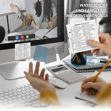 Vanntett og langvarig: Disse tyske Excel-snarveisklistremerkene er laget av høykvalitets PVC-materiale og er konstruert for å tåle daglig bruk og motstå slitasje. Den vanntette designen sikrer at klistremerkene forblir intakte selv når de utsettes for søl eller fuktighet, noe som gir langvarig ytelse og pålitelighet. Kompatibel med MAC OS, WINDOWS og EXCEL, disse klistremerkene er en praktisk og kostnadseffektiv løsning for alle som ønsker å forbedre sine Excel-ferdigheter. Den sterke selvklebende baksiden sikrer at klistremerkene holder seg sikkert på plass, mens den lett å rengjøre overflaten opprettholder et profesjonelt utseende. Invester i disse vanntette og langvarige snarveisklistremerkene og nyt mange års forbedret Excel-produktivitet.