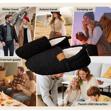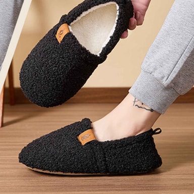 Overlegen sklisikker design: Disse inneskoene er utstyrt med en TPR-såle av høy kvalitet, som gir eksepsjonelt grep og forhindrer at du sklir på forskjellige overflater. Den sklisikre designen gir økt sikkerhet og stabilitet, noe som gjør dem perfekte for å navigere på glatte gulv eller potensielt glatte områder i hjemmet ditt. Kunder kan trygt bevege seg rundt i hjemmene sine og vite at disse tøflene gir et sikkert fotfeste. Den innovative sklisikre sålen sikrer at hvert trinn er stabilt, og gir trygghet for deg og din familie. Føl deg trygg og sikker mens du nyter varme og komfort.