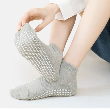 Pustende og behagelig: Disse sokkene er laget av førsteklasses kjemmet bomull, og tilbyr eksepsjonell pusteevne, og holder føttene dine kjølige og tørre under intense yogaøkter. De naturlige fibrene gir optimal luftsirkulasjon, og forhindrer oppbygging av fuktighet og ubehag.