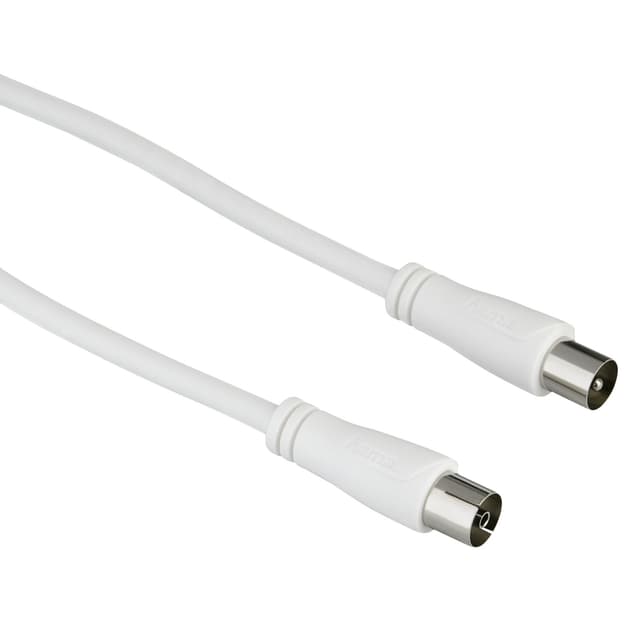 Hama anetennekabel (koaks) i hvit farge for signaloverføring fra antenne til TV. Med dobbel skjerming (90 dB) gis god demping av elektromagnetisk støy.