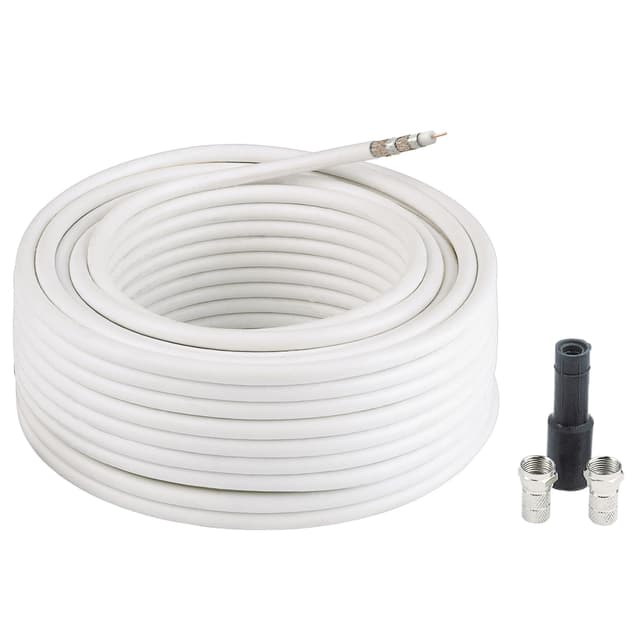 Hama koblingssett for tilkobling av parabolantenne til satellittmottaker. Settet inneholder 10 meter, hvit koaksial antennekabel ( 100 dB ), 2 x F-kontakt og en gummihylse. Kabelen kan også brukes til å installere antennene.Les mer om produktet