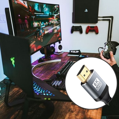 8K ved 60Hz oppdateringsfrekvens: Denne HDMI-kabelen støtter en imponerende 8K@60Hz oppdateringsfrekvens, som sikrer ekstremt jevne bevegelser og minimerer etterslep i spill, actionfylte filmer og dynamisk innhold.