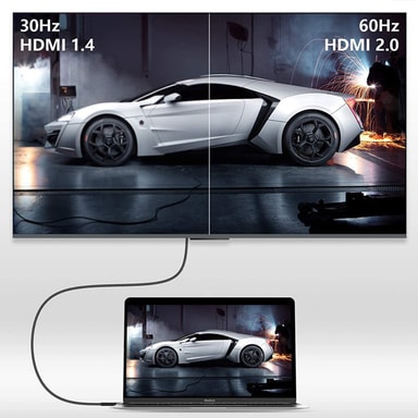 Utstyrt med HDMI-grensesnitt, kobler denne Type-C til HDMI-kabelen sømløst smarttelefonene eller datamaskinene dine til en hvilken som helst HDMI-aktivert TV eller skjerm. Nyt rask streaming og rask dataoverføring, som forbedrer produktiviteten og underholdningen.