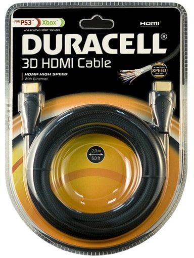 Duracell 3D HDMI-kabel med rask overføringshastighet for PlayStation 3, Xbox 360 og universelt bruk.