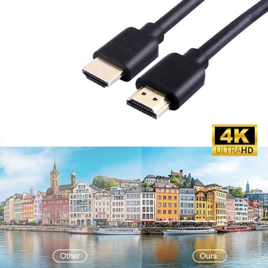 HDMI-kabel med rask og pålitelig overføringshastighet for lyd, video og bilder. Perfekt for tilkobling av HDTV-skjerm, dataskjerm eller projektor. Gir krystallklar lydkvalitet og den beste visuelle opplevelsen av ultrahøy oppløsning i 4K.