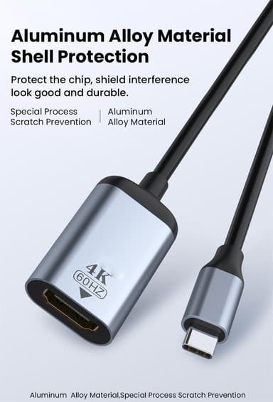 NÖRDIC USBC til HDMI-adapter 12cm 4k 60Hz-støtte for HDCP1.4 og 2.2 Space Grey AluminiumLes mer om produktet