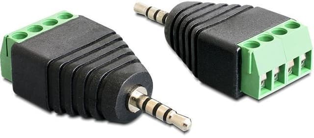 DeLOCK stereo adapter, 2,5mm stereo ha til 4-pin terminalblock, svart/grønnLes mer om produktet