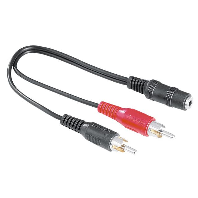 Hama lydadapter (2 x RCA hann - 3.5 mm jack hunn) for tilkobling av lydenheter med 3.5 mm stereojack for enheter med RCA-utganger.