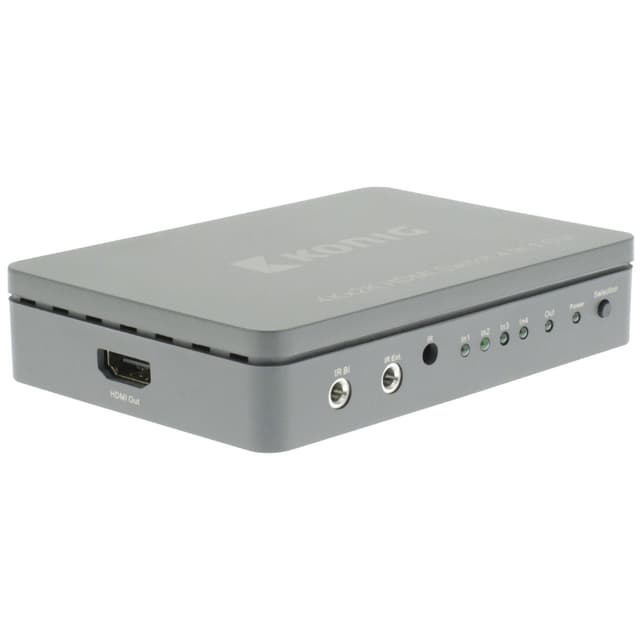 Vis filmer, presentasjoner eller bilder på fire skjermer samtidig i 4K UHD-kvalitet med 4-Port Ultra HD HDMI-switch fra König. Takket være splitter-boostene, vil du ikke miste noen signalkvalitet, selv med lengre kabler.