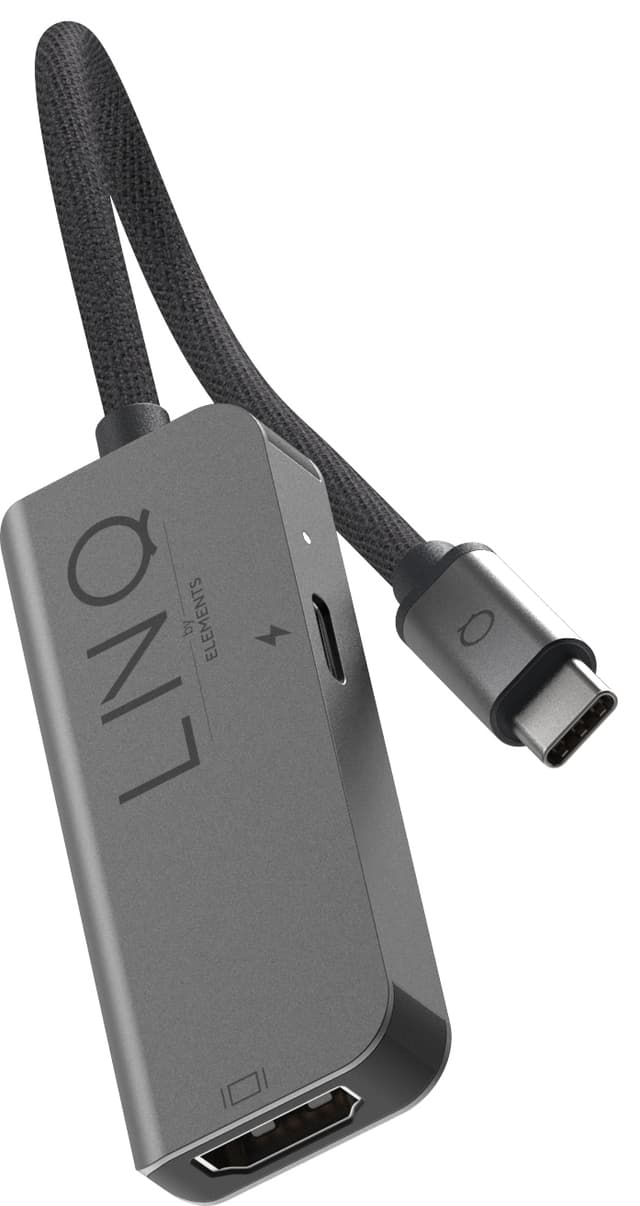 LinQ 2-i-1 USB-C adapter gir flere tilkoblingsmuligheter til dine bærbare enheter. Den gir deg muligheten til å se 4K-innhold på en ekstern skjerm takket være HDMI-porten, og den lar deg bruke USB-C-porten som støtter PD-protokoller på opptil 100W (adapteren bruker 15W).
