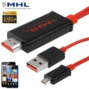 MHL Adapter Micro-USB til HDMI Adapter med USB ledning for lading av telefon. For å koble enheter med støtte for MHL (tabletter og smartphones) til en skjerm med HDMI. Koble inn USB 2.0 ledningen i en datamaskin, monitor, TV eller usb-lader og lade din enhet Ledningslengde: 2 meter MHL-versjon: 1.0, 5-Pin, 25MHz - 75MHz Passer f.eks. HTC / Samsung / LG / Sony hvis enheten har støtte for MHL funksjon.