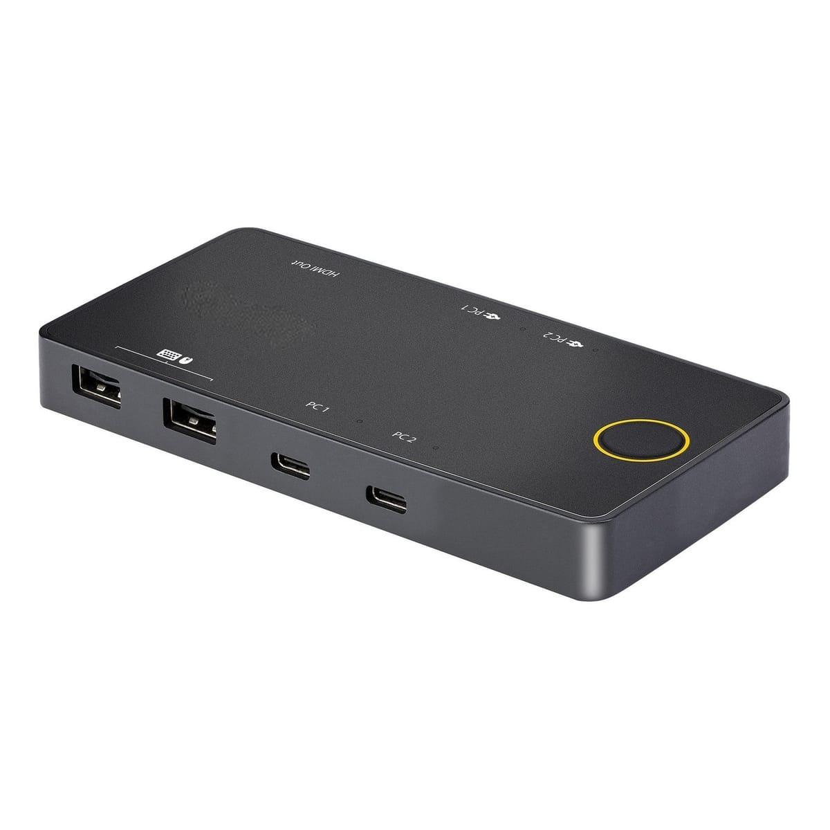 Denne USB-C KVM-svitsjen kobler to av datamaskinene dine via de medfølgende kablene til en ekstern skjerm samt et sett med to USB-enheter. Switchen støtter oppløsninger på opptil 4K60Hz via HDMI 2.0 med en båndbredde på opptil 18Gbps.Les mer om produktet