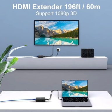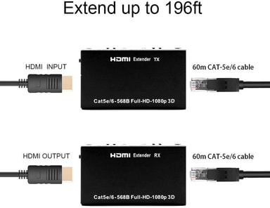 FunksjonerForlenger HDMI-signal opptil 60 meter via Cat5e- eller Cat6-kabel