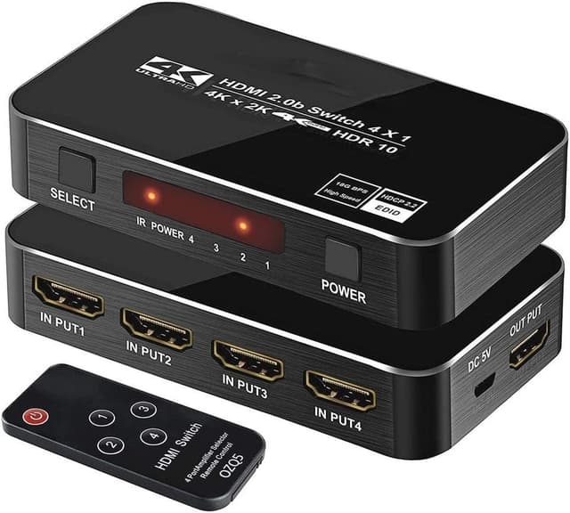 NÖRDIC HDMI Switch 4 til 1 lar deg koble 4 HDMI-kilder til en TV, lerret, projektor eller lignende. Switchen støtter oppløsninger på opptil 4K 60Hz og har en båndbredde på 18Gbps. Produktet støtter også HDR 10, HDCP 2.2. Den støtter fargeformater opp til RGB 4:4:4 og en fargedybde på 36 bpc. Du kan bytte mellom tilkoblede enheter via en knapp på bryteren eller via den medfølgende fjernkontrollen. Bryteren drives av den medfølgende 5V DC-kabelen.