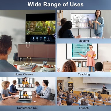 Enten du bruker laptop, kamera eller TV-boks, kan du overføre innhold til prosjektor, TV eller skjerm i Full HD (1080p@60Hz) med minimal forsinkelse (<0>,1 s). Rekkevidde opptil 30 m via stabil 2.4G/5G-overføring, også gjennom vegger. Spesifikasjoner