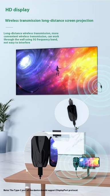 Nördic Trådløs USB-C til HDMI-forlenger 150 m gjør det mulig å overføre video og lyd trådløst i Full HD fra datamaskiner og mobile enheter til TV, skjerm eller projektor. Den bruker 5 GHz trådløs teknologi for stabil og rask signaloverføring med lav risiko for forstyrrelser. Perfekt for presentasjoner, hjemmekino og møterom der kabling er upraktisk. USB-C-porten støtter DisplayPort-protokoll og kan gi lading under bruk.