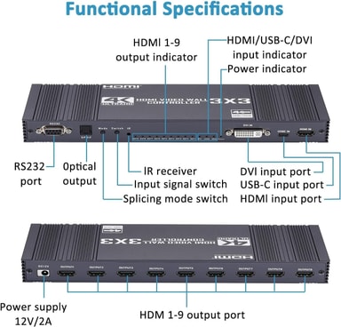 SpesifikasjonerType: 3x3 video wall controller / TV-veggprosessor