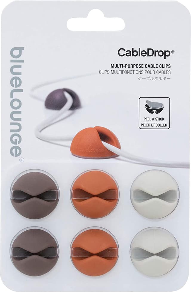BlueLounge CableDrop kabelholdere CD-MT holder vaiere, kabler og ledninger på plass akkurat der du vil ha dem. Kabelholderne er lette å montere takket være deres klebende bakside, og de kan festes på alle overflater.Les mer om produktet