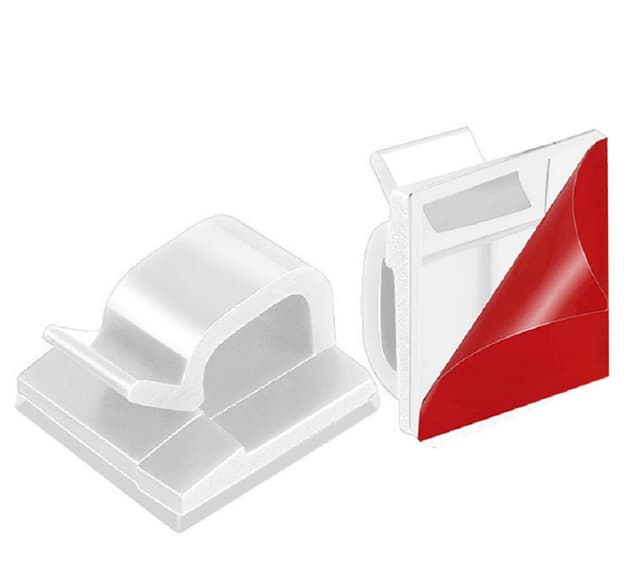 Disse klipsene er utstyrt med kraftig selvklebende tape som fester seg til alle flate og tørre overflater. De er enkle å fjerne uten å etterlate rester eller skader. Veldig nyttig for å organisere ulike kabler.