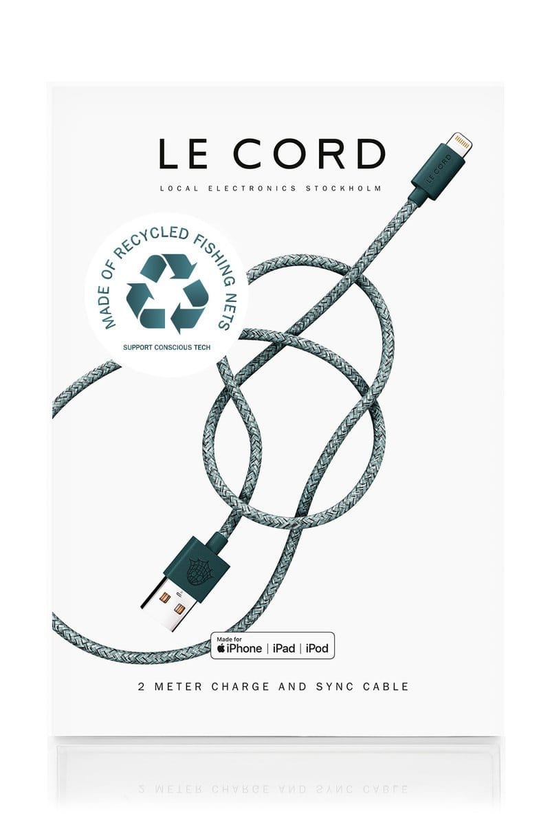 Lad opp igjen havene! Som det eneste merket i verden produserer Le Cord Apple MFI-sertifisert ladetilbehør laget av resirkulerte råvarer. Vår nåværende kolleksjon er laget av resirkulert plast hentet fra kastede fiskegarn samlet inn fra havene og fiskeindustrien. Hvis du leter etter en premium, holdbar vare med bevisste verdier som beskytter miljøet, er dette for deg!