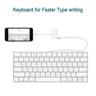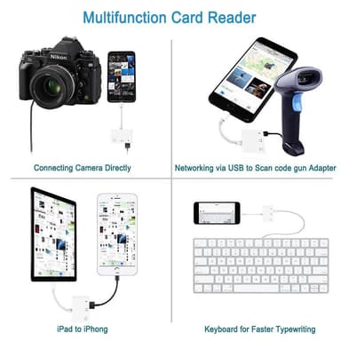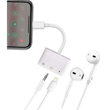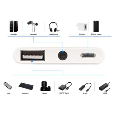 NÖRDIC Lightning Adapter 1 til 3 Porter 1XUSB A 1X AUDIO 3,5 MM og 1X Lightning for Lading