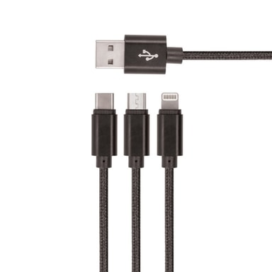 MicroUSB/USB-C/Lightning-kabel til USB A 2.0-kabel 1 m.