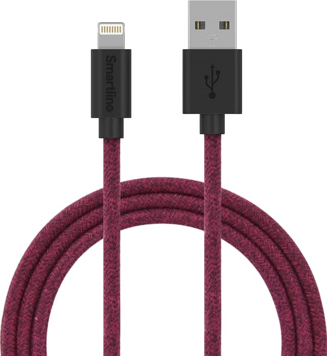 • Smartline USB-A til Lightning flettet kabel 2 m (rød)