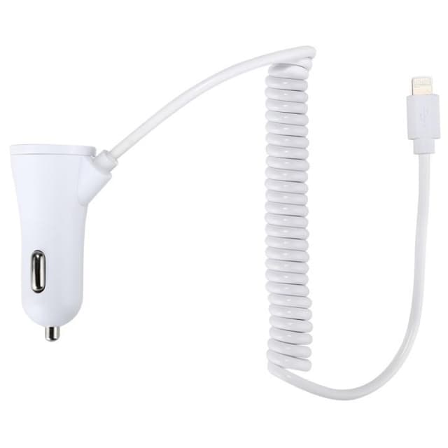 Bil lader av høy kvalitet for iPhone med Lightning-tilkobling. Laderen kobles direkte til bilens 12-voltsuttak og deretter til mobiltelefonen.