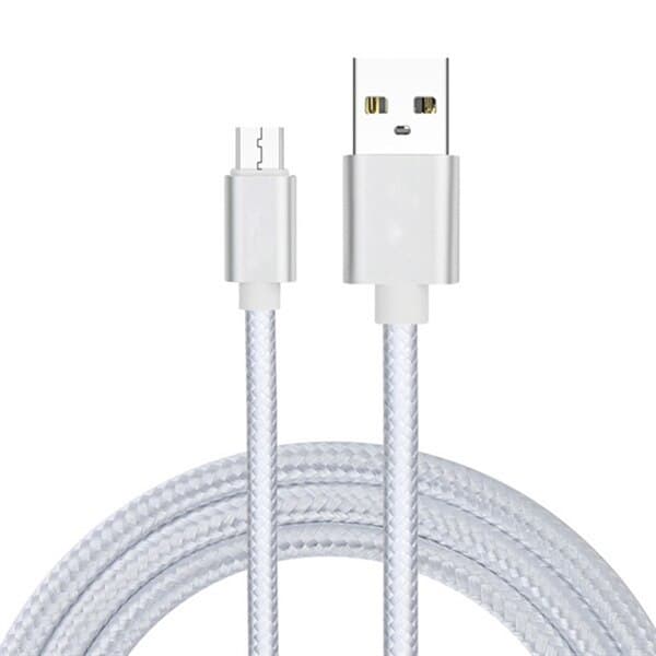 Robust stoffkabel til lading av mobiltelefoner med standard Micro Usb tilkobling.