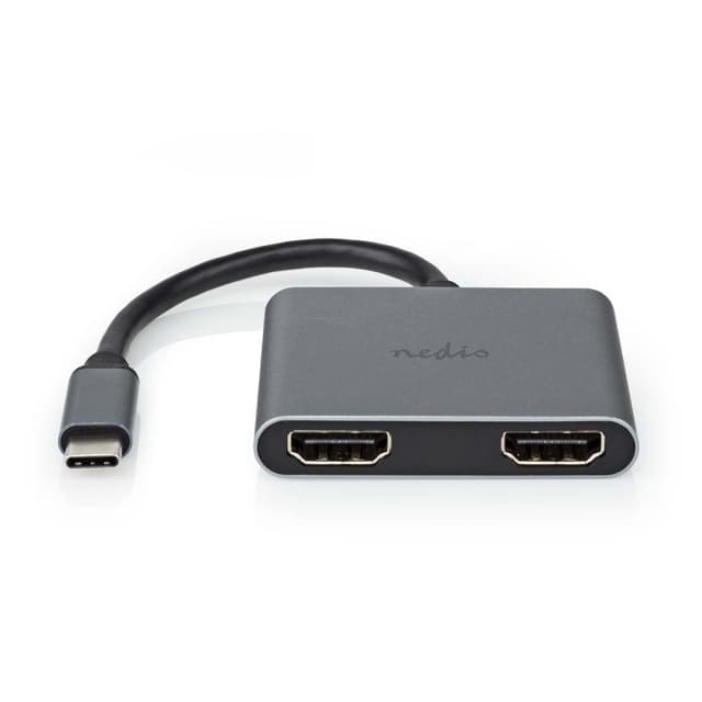 • Nedis USB-C™ Adapter | 2-in-1 | USB 3.2 Gen 1 | USB-C™ Hann | 2x HDMI™ | 4K@30Hz | 0.10 m | Rund | Nikkel belagt | PVC | Sort | Boks