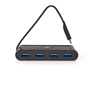• Nedis USB Multi-Port Adapter | USB 3.2 Gen 1 | USB-C™ Hann | 4x USB-A | Rund | Nikkel belagt | Sort | Vindusboks med Euro Lock