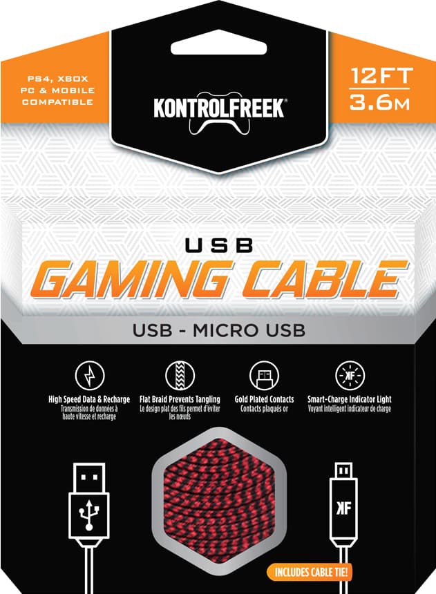 KontrolFreek USB gamingkabel er designet spesielt for bruk med dine PlayStation og Xbox-kontroller, for å koble dine foretrukne enheter til PC-en din, og for å lade opp mobilenheter. I tillegg til hurtigopplading har denne kabelen også en høy overføringshastighet på 480 Mbps, så du kan overføre filer på et blunk. For forlenget levetid har kabelen gullbelagte kontakter som forebygger korrosjon.