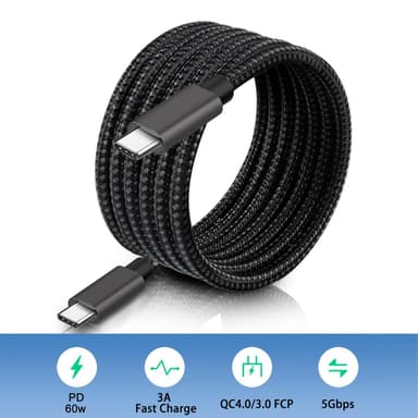 NÖRDIC 1.5M USB C 3.1 til USB C Nylon Flettet Kabel Fast Charge 3A Gen1 5Gbps Strømlevering PD 60WLes mer om produktet