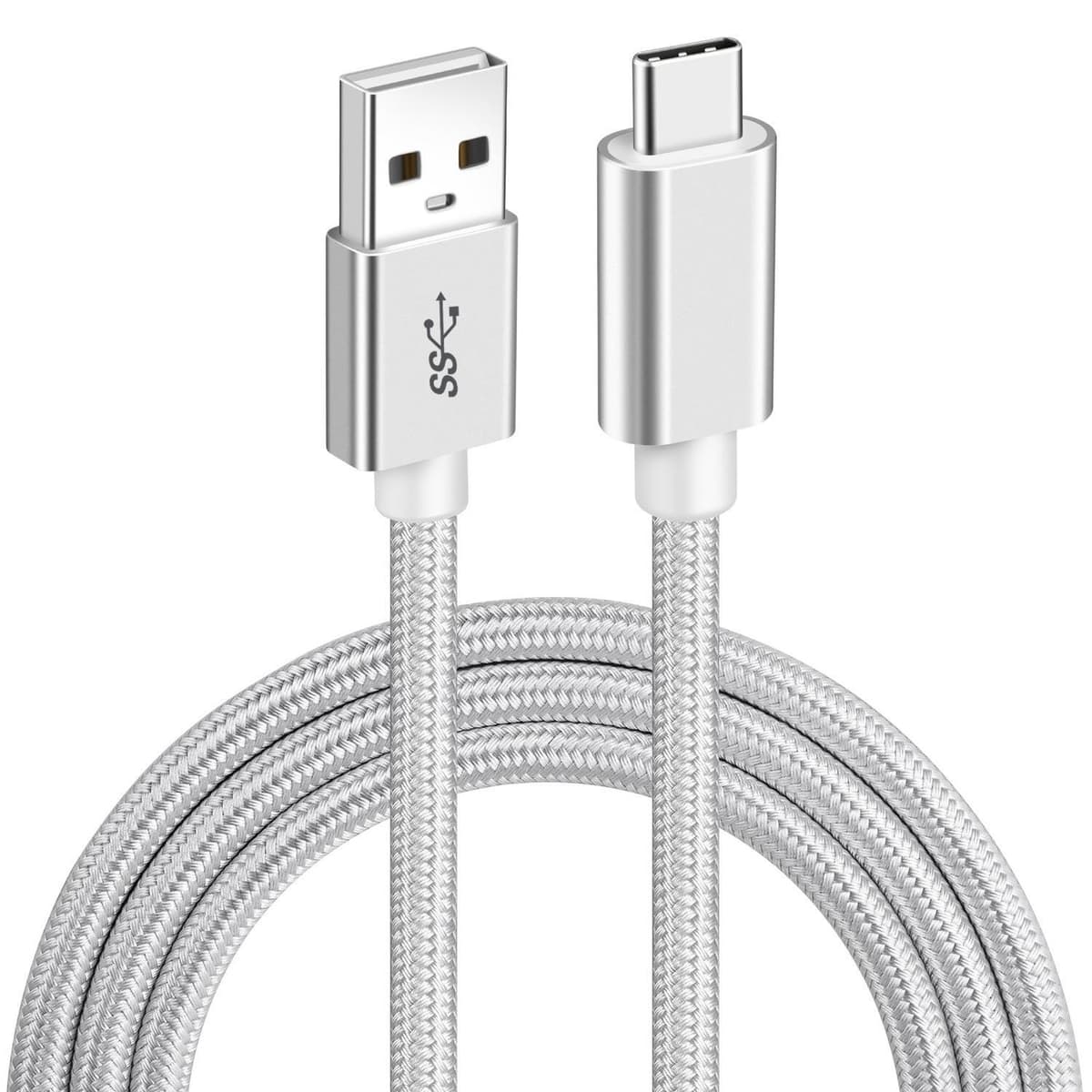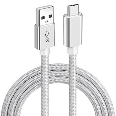 NÖRDIC 1m USB-C til USB-A kabel USB3.1 Gen1 Fast Charge 3A 60W 5Gbps Nylon Flettet Hvit