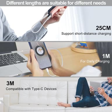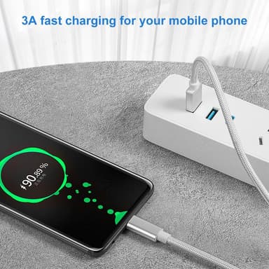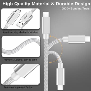 NÖRDIC 15cm USB C til USB En kabel USB3.1 Gen1 Fast Charge 3A 60W 5Gbps Nylon Flettet HvitLes mer om produktet
