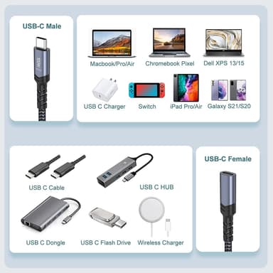 NÖRDIC SuperSpeed USB 10 Gbps skjøtekabel lar deg forlenge et USB-C-signal. Kabelen inneholder et E-markeringsbrikkesett for å beskytte enhetene dine når du lader dem.
