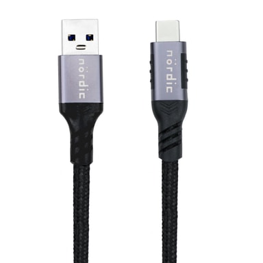 NÖRDIC USB C til USB En kabel med 3A sikker hurtiglading og dataoverføringshastighet på opptil 5 Gbps. Perfekt for lading av bærbare datamaskiner, nettbrett og mobiltelefoner.