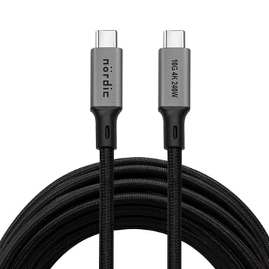 NÖRDIC USB 3.2 Gen 2-kabel støtter 10 Gbps dataoverføring, 240W (48V 5A) strømforsyning og 4K-video. Passer for alle bærbare datamaskiner, stasjonære, macbooks, nettbrett og smarttelefoner med USB-C eller Thunderbolt-støtte.Les mer om produktet